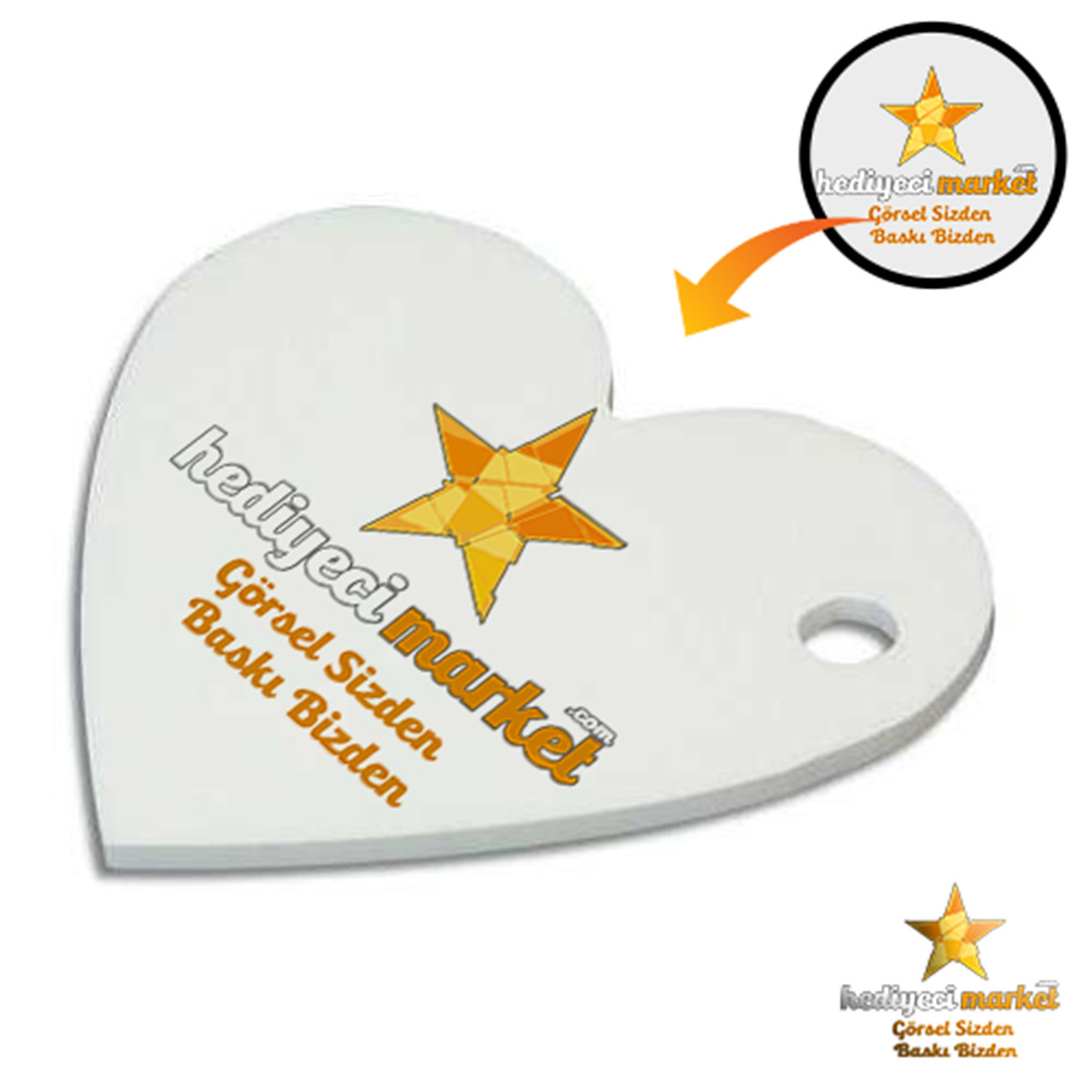 Süblimasyon baskıya ile üretilen, Kalp şeklinde tasarlanmış,